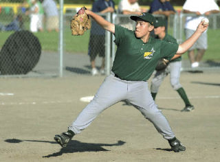 Joey Galeno of the Auburn Majors All-Stars fires a pitch during Thursday’s District 10 tournament game against Soundview. Galeno did not allow a hit in relief