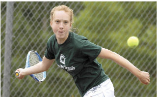 Peyton Prothero of Auburn keeps her eye on the ball and takes aim at a forehand shot on Tuesday during the Auburn Valley Junior Tennis tournament girls singles competition. Prothero