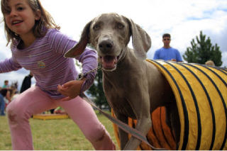 Aureliana Weinstein, 6, leads Dakota through a section of the dog agility training course during DogVenture Day at the Auburn Valley YMCA on Saturday. Classes included dog first aid, obedience, agility, grooming and behavior basics/questions and answers in the free community event for canines and their owners.