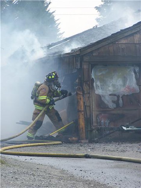 Structure fire: 3:37 p.m. (Auburn). VRFA, Kent and Federal Way units responded to a detached garage fire at the 300 block of “E” St. SE. Firefighters arrived to find arcing power lines blocking access to the fire. There were two garage units aflame, two homes severely threatened and sustaining damage from the garage fires. Firefighters contained and prevented further loss to homeowner’s belongings. There were no injuries to civilians. One firefighter was taken to ARMC for a minor injury and released.