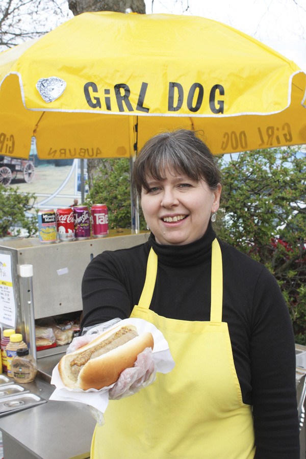 Lisa Harmon’s hot dog stand – one of the first of its kind in Auburn history – is operating on Main Street.