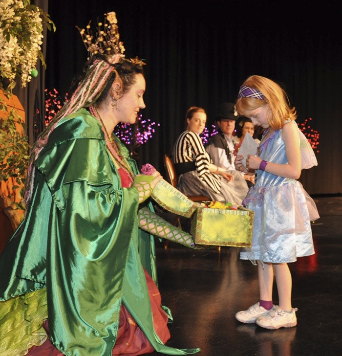 Princess Lolly offers up a prize from her treasure chest to costume contest winner Ivy Francis