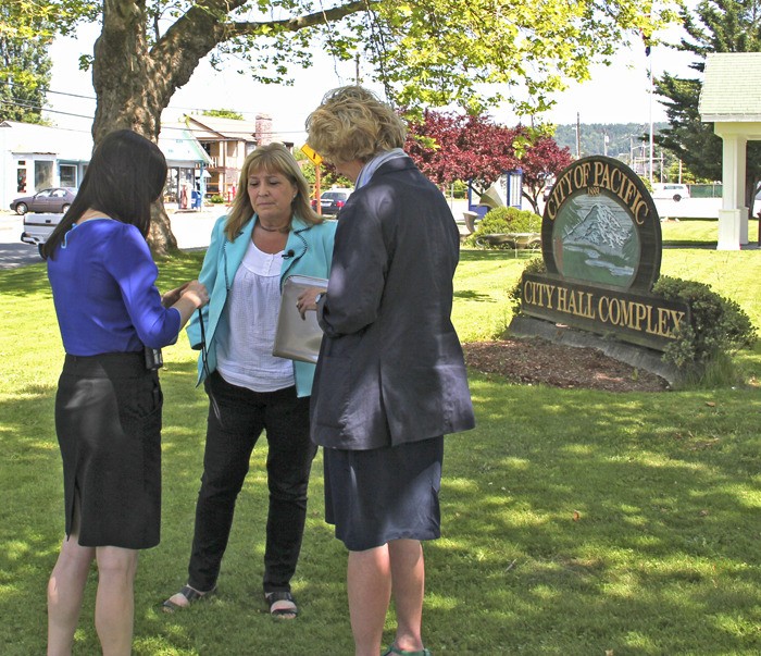 After Pacific police cut the padlock and removed the hasp from her door, Montgomery met with her personal lawyer and held a news conference on the City Hall lawn.