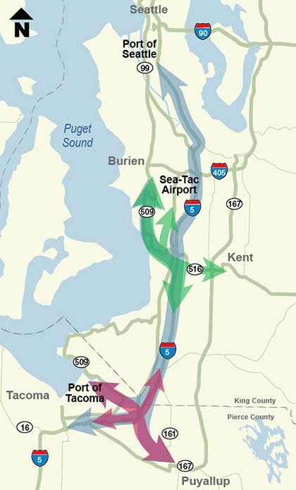 The point is to relieve traffic congestion and complete critical freight links between the Ports of Tacoma and Seattle and key distribution centers and warehouses in both counties. White said that doing so would support regional job and economic growth at the two ports and add 10-to-20 percent more capacity to I-5 through express toll lanes, thereby reducing congestion and travel times between Seattle and Tacoma.