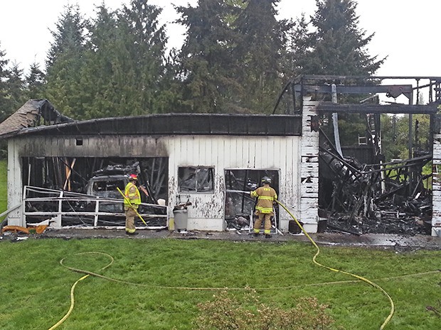 A fire destroyed a detached garage early this morning at 115 Third Ave. N. in Algona.