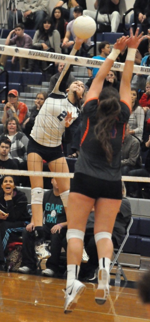 Auburn Riverside navigated that environment with a youthful roster. The Ravens only have three seniors. But two of them – middle hitter Kasey Holand, who had 12 kills, 11 digs and two blocks, and outside hitter Kiana Drumheller – made significant impacts. Drumheller finished with 19 kills, 11 digs and two aces.