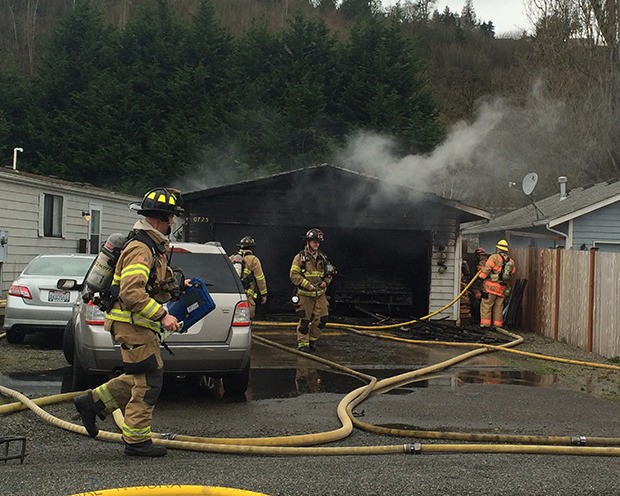 Valley Regional Fire Authority firefighters were dispatched to the 700 block of Main Street in Algona at approximately 1:45 p.m. and saw a large column of smoke from a few miles away. When they arrived, they found a detached two-car garage fully engulfed in flames. They quickly extinguished the fire, with the help of crews from South King Fire & Rescue.