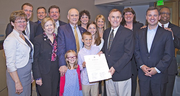 King County Councilmember Pete von Reichbauer and the King County Council recognized businessman Ron Crockett on Monday for saving Thoroughbred racing in Western Washington and for his generous philanthropy over the years.