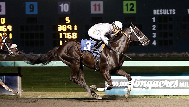 Surfliner, a 35-1 outsider ridden by Javier Matias, rallied from last to finish third and paid $7.60, while Roman Boos, Mr. Takahashi, Legion of Boom, Dustin’s Passion, Dare Me Devil and Daytona Beach completed the order of finish. Outdidya was scratched and reentered in the seventh race Saturday.