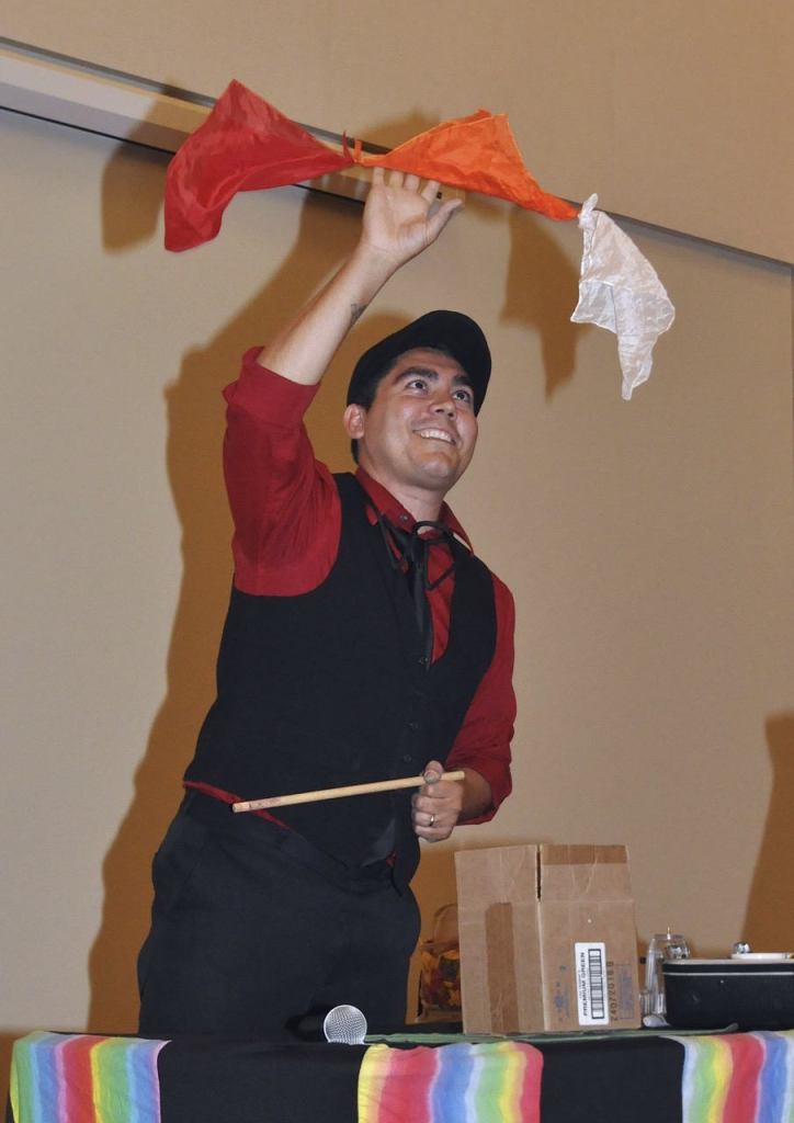 Magician John London performs a trick during the Ladies & Lil Gents event at the Auburn Park