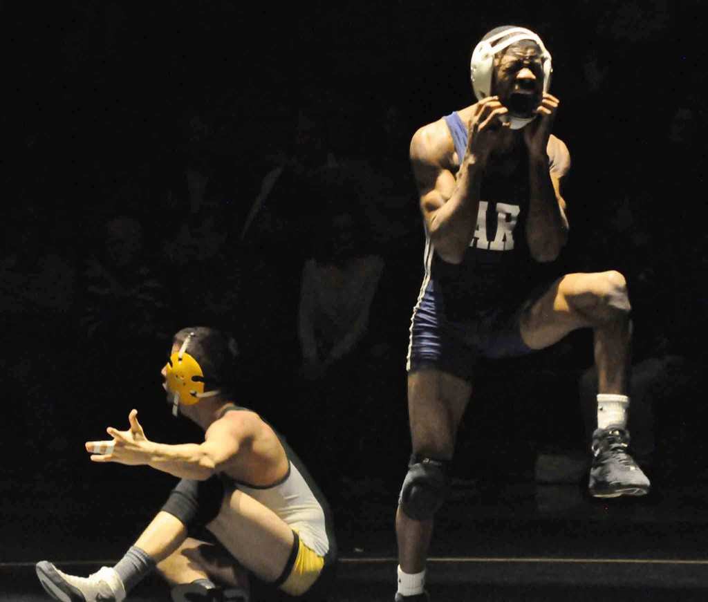 “As a coach it was a great environment,” said the Ravens’ Kyle Jones. “The crowd was into the dual. Both teams were amped up and ready to go. It was great to see our kids respond the way they did to a big match against a very tough opponent and come out on top.”