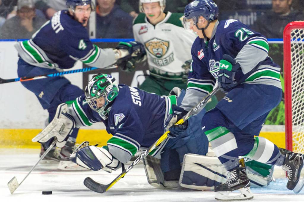Shots on goal – Seattle 9-5-1 15, Everett 11-5-7 23. Goalies – Seattle, Stankowski 23 shots-20 saves (6-0); Everett, Hart 15-11 (4-4). Power plays – Seattle 1-3; Everett 0-3. A – 5,129. Referees – Sean Raphael, Reagan Vetter. Linesmen – Nick Bilko, Michael McGowan.