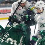 In the third period the Silvertips pulled Hart several times for an extra attacker. The T-Birds kept Everett’s man-advantage attack at bay as they were outshot 12-7 in the period.