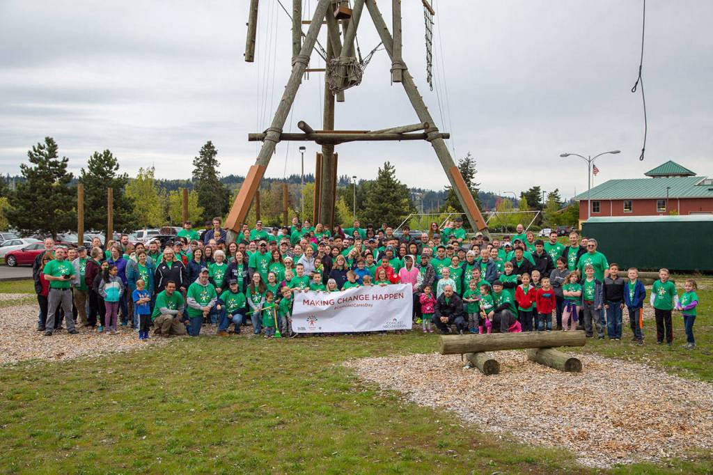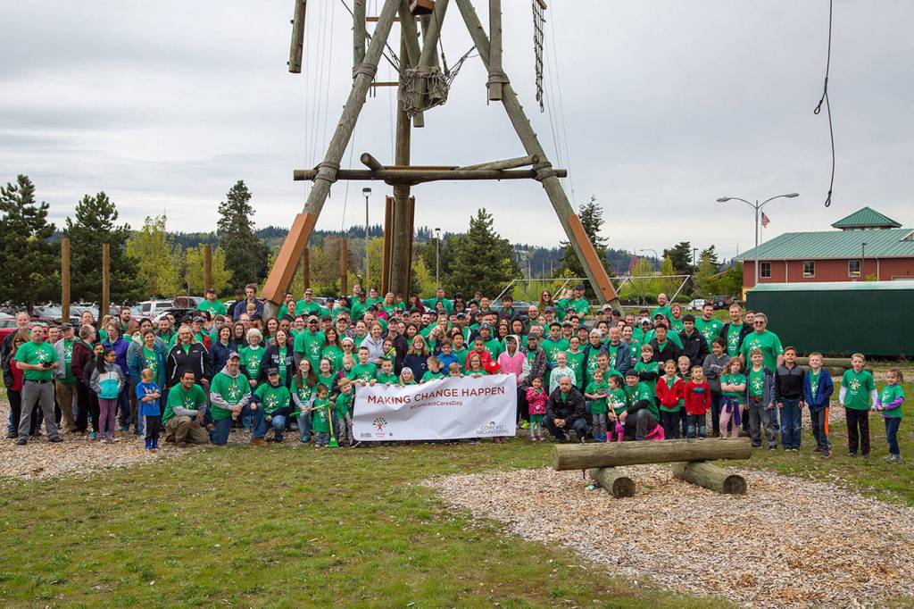 Volunteers at Comcast Cares Day event: spread 20 yards of bark around the YMCA’s perimeter; added more than 30 yards of play chips to the YMCA’s large climbing tower; added more than 10 yards of top soil to four raised garden beds; planted strawberries and vegetables in the raised beds for campers to harvest; planted flowers in numerous large planters and 60 small planters; painted more than 1,300 feet of yellow curbing; painted and stenciled more than 15 handicap parking spaces; prepared indoor areas for the national YMCA Healthy Kids Day event set for Saturday; and assembled 150 lunch tote packs with water bottles and sunglasses to be given to summer campers.