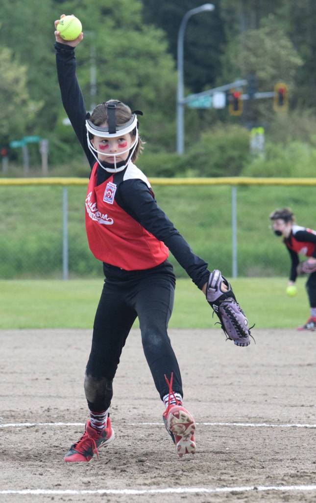 Addy McDonough winds up to deliver a pitch for the Rainiers. RACHEL CIAMPI, Auburn Reporter
