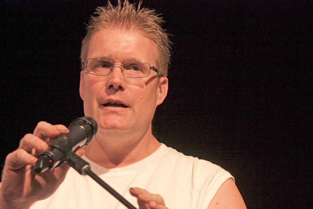 Keith Minnar describes his struggle with a painkilling drug addiction that nearly cost him his life and his family, during a town hall gathering last week. MARK KLAAS, Auburn Reporter