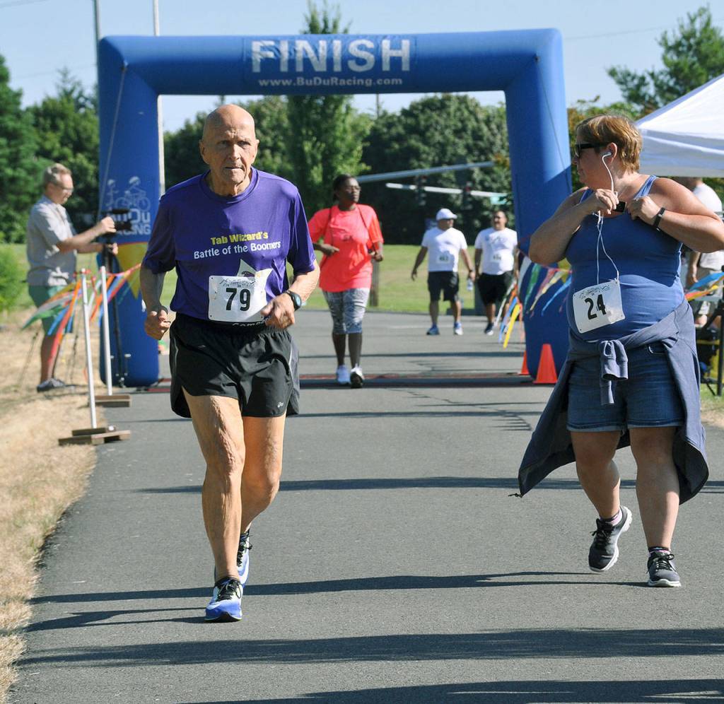 Jerry Dietrich, 83, of Gig Harbor, was the second to the last finisher in the Battle of the Boomers (41:09) and got a $50 cash prize.