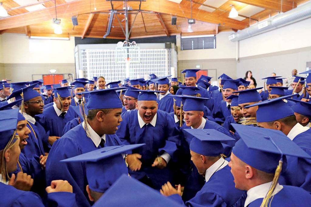 At commencement at Auburn High School, A.J. Robert held up his graduation cap. On one side was the familiar green and gold tassels of Auburn. Next to it, were blue and gold tassels from the Washington Youth Academy.