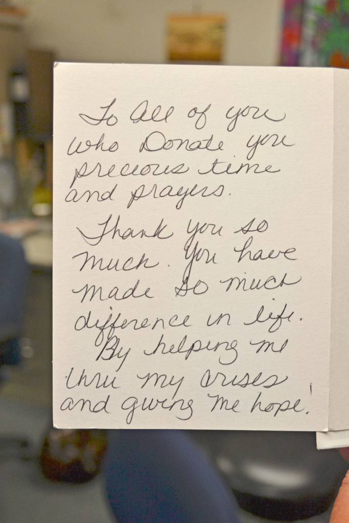 A patient grateful for services received at Christ Community Free Clinic recently wrote this thank you note to staff. ROBERT WHALE, Auburn Reporter