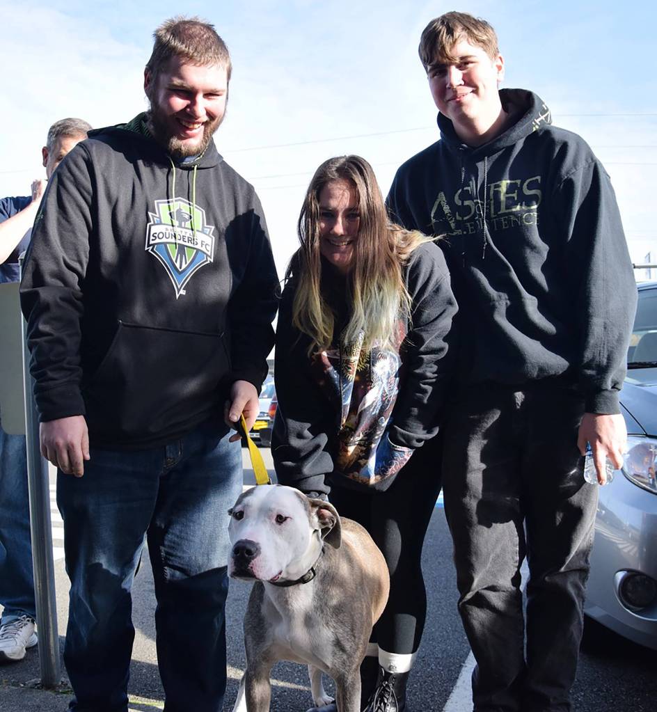 Dustin Becker, Anna Neumann and Taylor Harris adopt Max. RACHEL CIAMPI, Auburn Reporter