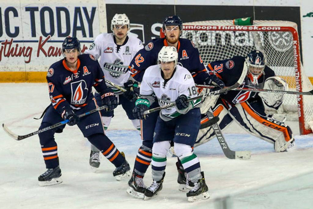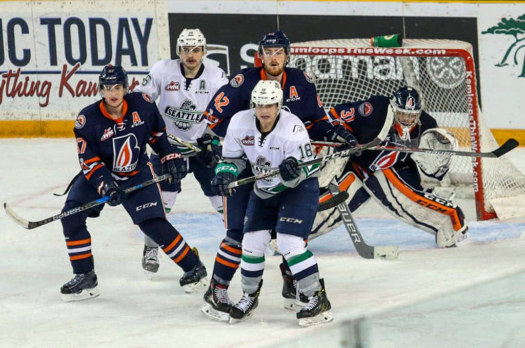 Seattle (11-12-2-1) took a 1-0 lead 1:29 into the first period. Nolan Volcan brought the puck out from behind the Kamloops net and got a shot off. The puck came off Kamloops goalie Dylan Ferguson to Sami Moilanen to the left of the net. Moilanen took several swipes and the puck and got it past Ferguson for his team leading 14th goal of the season.