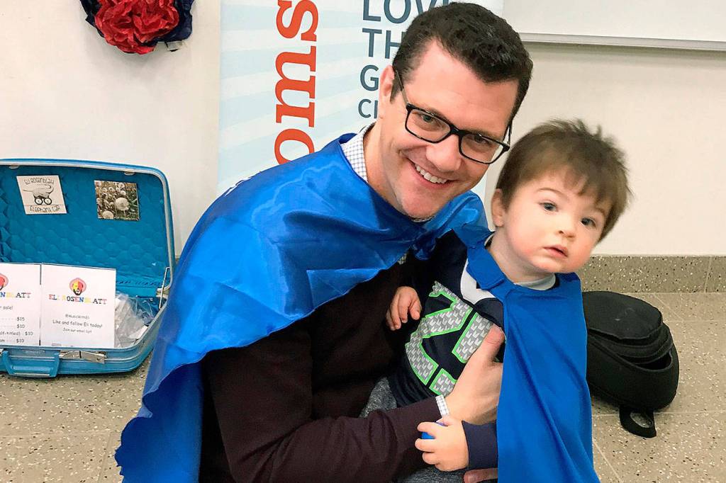 Moms, dads, children and family members gathered with state Sen. Joe Fain, R-Auburn, at Green River College on Sunday to celebrate the recent passage of paid family and medical leave in the Legislature.