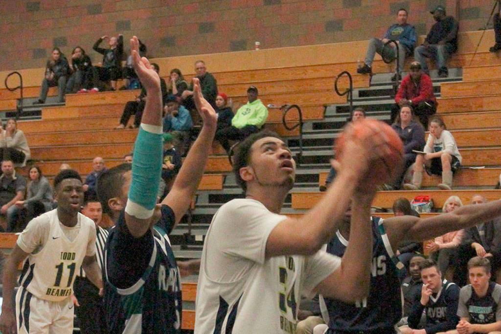 Todd Beamer post Zyair Dillon looks to make a layup in the first half of the Titans’ North Puget Sound League Olympic Division game against Auburn Riverside on Tuesday in Federal Way.