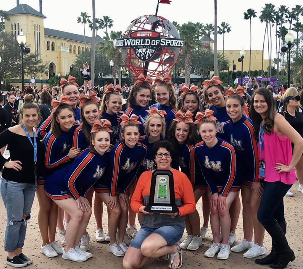 The Auburn Mountainview Cheer Team reached the finals in one division and the semifinals in another at the Universal Cheerleaders Association (UCA) National High School Cheerleading Championships at the Walt Disney World Resort in Orlando, Fla., Feb. 10-11.