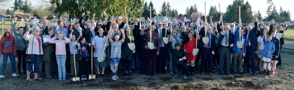 School and community leaders join parents, students and supporters at the official groundbreaking ceremony March 20 for the new Olympic Middle School. RACHEL CIAMPI, Auburn Reporter