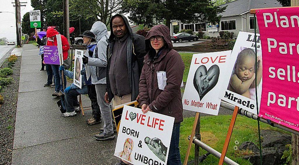 A group of a couple dozen people were rallying against taxpayer money going to the clinic, which, among many other services, provides abortions. The Respect Life Committee from St. Stephen the Martyr Catholic Church in Renton organized the protest, according to its website.
