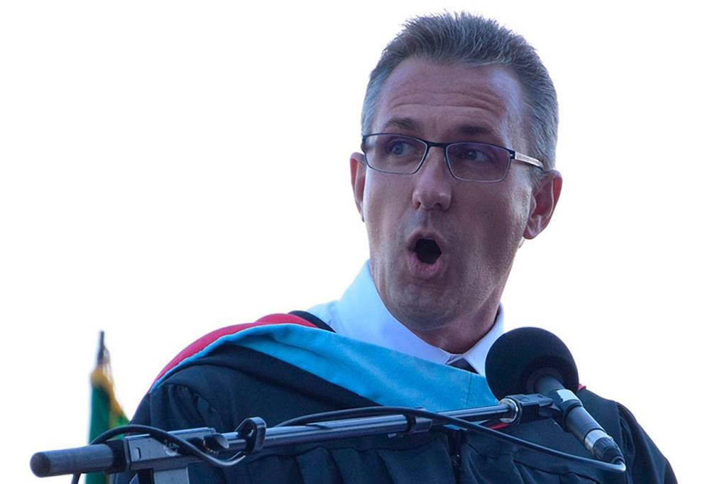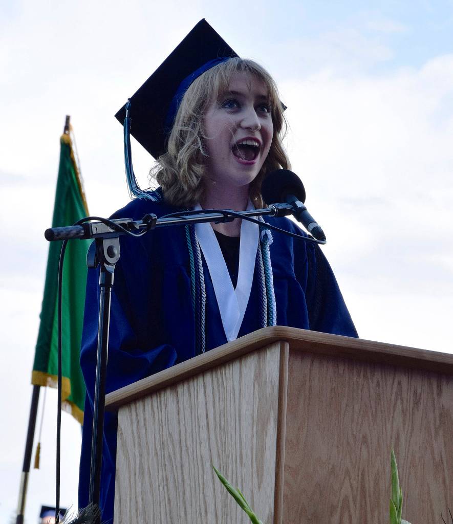 Auburn Riverside High School’s senior class of 2018 tosses its caps into the air after the end of graduation ceremonies at Auburn Memorial Stadium last Saturday.