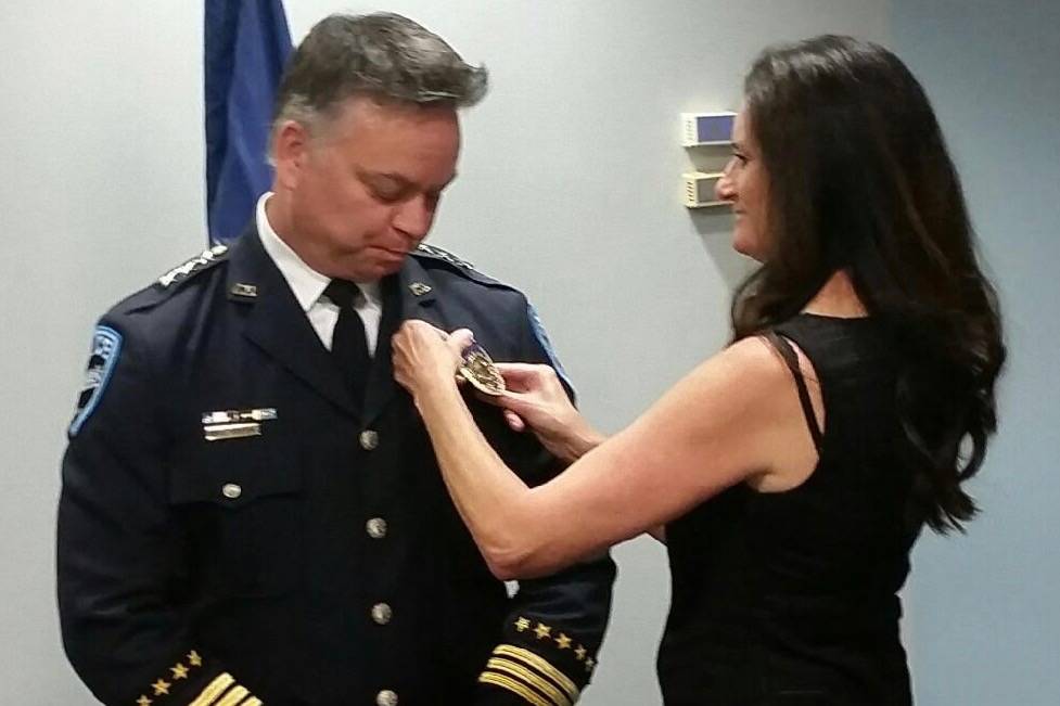 On Monday night at Auburn City Hall, with wife, Debbie, and daughter, Emily, looking on, Pierson was sworn in as Auburn’s new police chief by Mayor Nancy Backus.