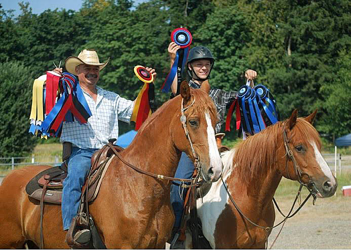 High-point winner Trevor Storm on Pete, left, owned by Crystal Carter Creson, and Reserve high-point winner Leandro Ramirez on Harley, owned by Alice Fagerlund. COURTESY PHOTO