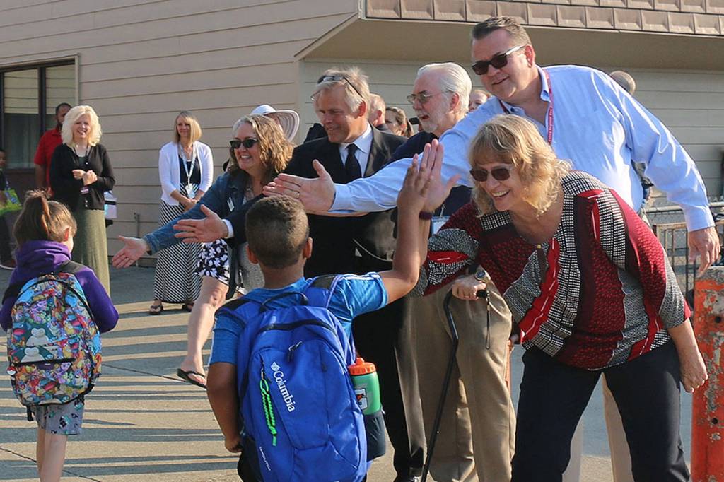 Police departments, the Valley Regional Fire Authority, and elected officials and staff from both cities joined by Auburn School District Superintendent Alan Spicciati and Alpac teachers came together for high-fives and cheers to welcome eager students back to class.