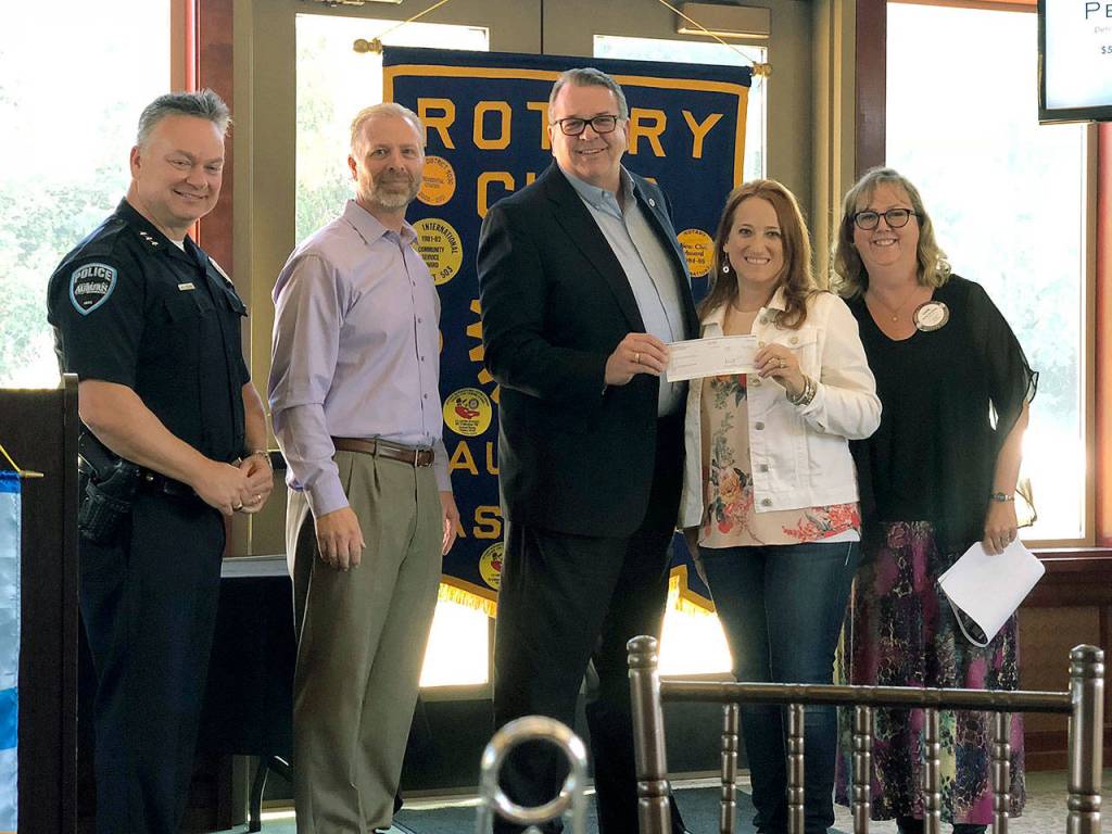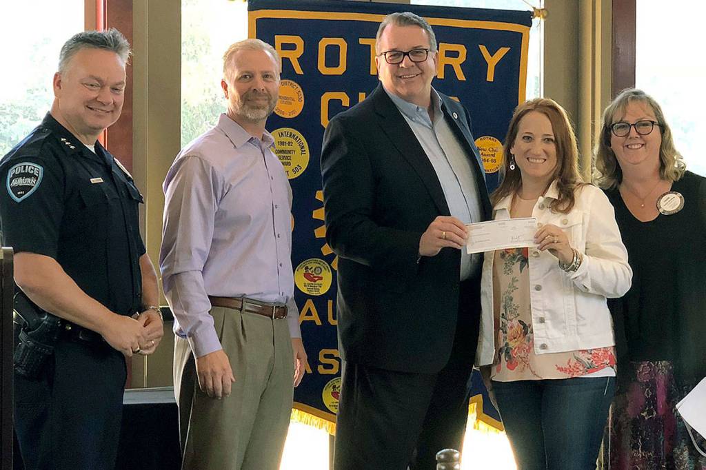 The Auburn Reporter – on behalf of the Valley Regional Fire Authority and Auburn Police – presents a $500 donation to Battlefield Addiction at a recent Rotary Club gathering. Proceeds from the Reporter’s Support First Responders page it publishes each year went to Battlefield Addiction, an organization that helps people deal with addictions. It also operates Battlefield Coffee House, at 129 A St., Auburn, that supports the mission.