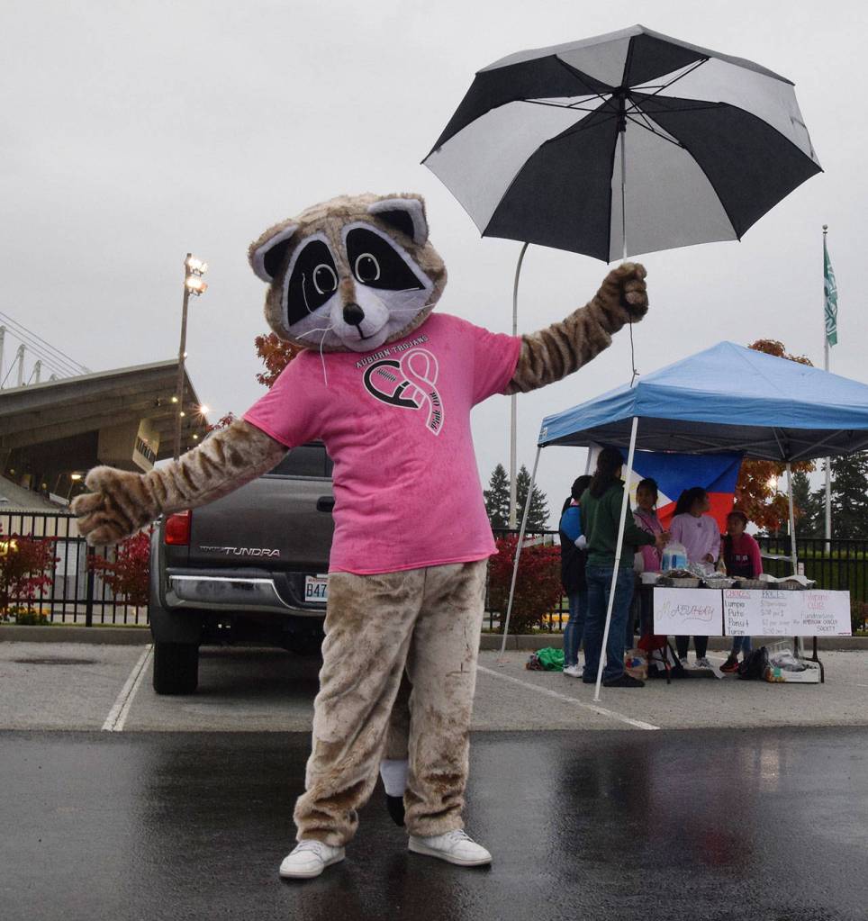 Despite the steady rain, Auburn and Auburn Mountainview high school students joined community partners for the second annual Pink Out tailgate party to beat breast cancer last Friday.