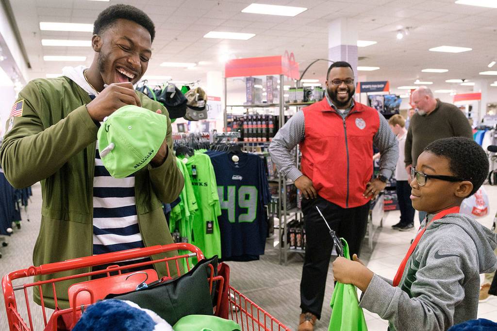 JCPenney and the Seattle Seahawks spread some holiday cheer by helping area YMCA kids with its Giving Spree event Tuesday at the Southcenter Mall.