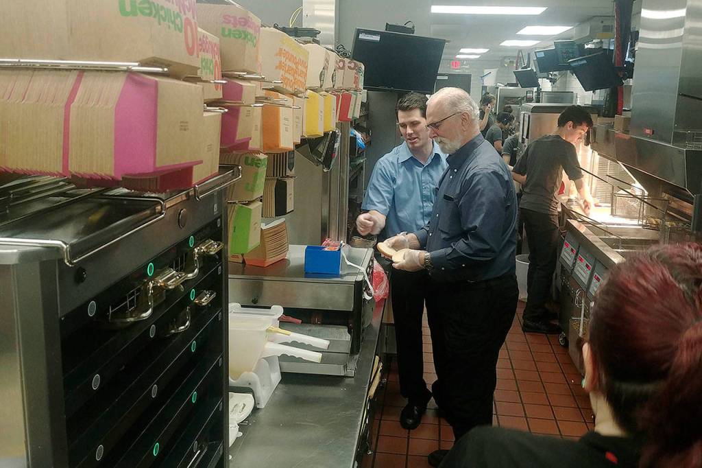 Fortunato visited the Enumclaw McDonald’s for a tour by franchisee Alex Medeiros and learned how to prepare one of his favorite burgers, the Quarter Pounder with Cheese.