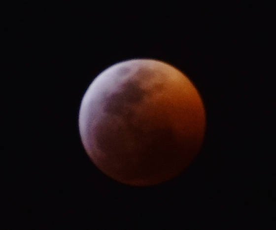 It’s not considered a total eclipse. The moon never goes completely dark but rather takes on a coppery red glow, a blood moon.
