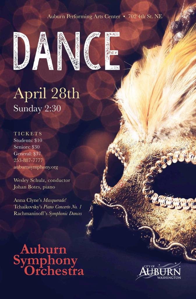 ASO’s spring concert, Dance, begins at 2:30 p.m. Sunday, April 28 at the Auburn Performing Arts Center, 702 Fourth St. NE.