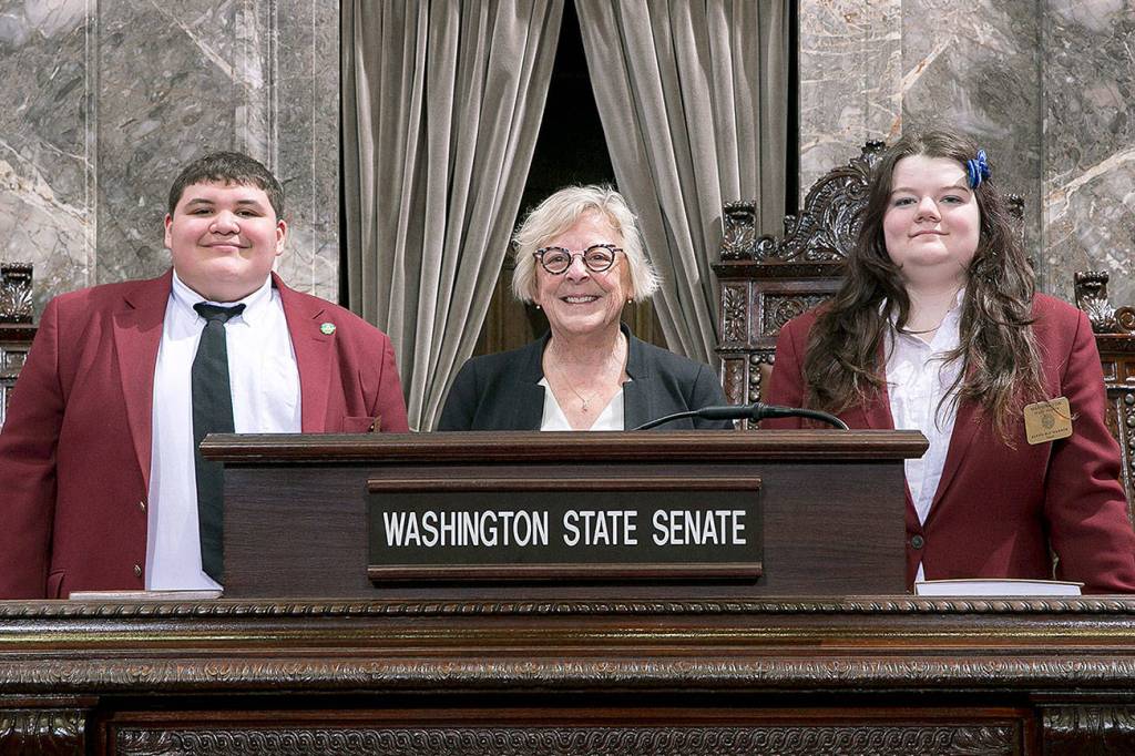 Estevan Garcia and Alexis “Blu” Warner served as pages in the Washington State Senate during the first week of April.