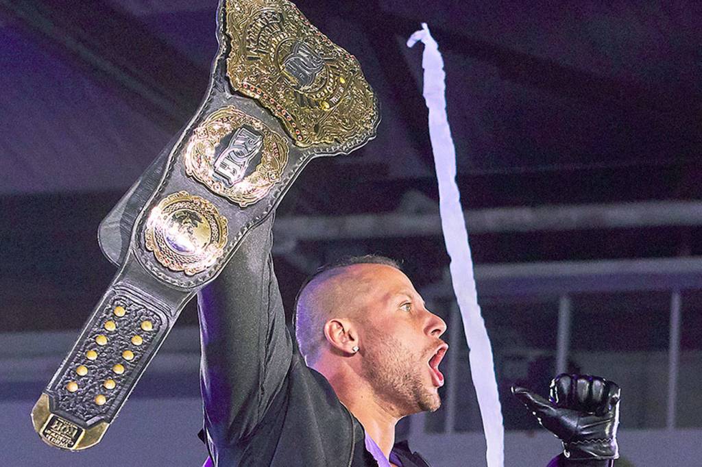 “The work just begins when you’re the champion,” said Taven, whose signature moves include a running knee strike to a seated opponent and a spin kick. “I’ve been put through the ringer.”