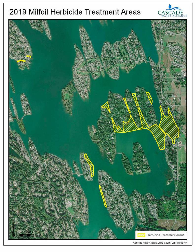 Cascade Water Alliance, which owns and operates the Lake Tapps Reservoir, conducted two milfoil surveys this spring. Based on these surveys, Cascade is announcing its 2019 planned milfoil treatment.
