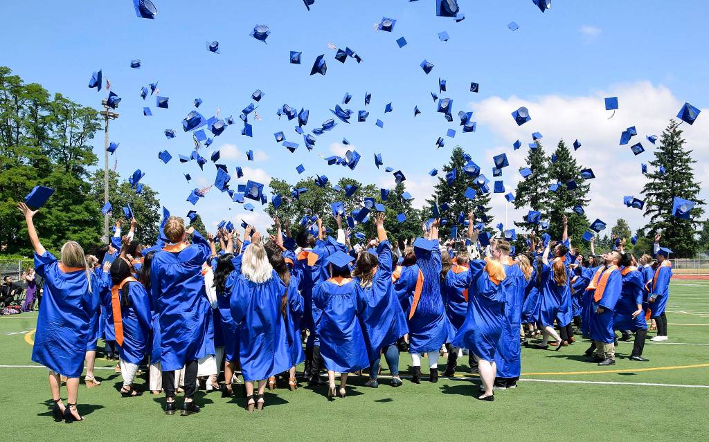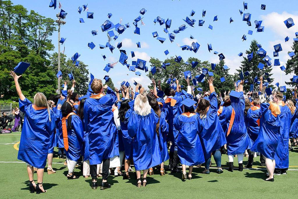 Graduating seniors from Auburn Mountainview High School’s class of ‘19 toss their caps into the air at the end of commencement at Auburn Memorial Stadium last Saturday. Hundreds of seniors graduated from Auburn’s four high schools – Auburn, Auburn Mountainview, Auburn Riverside and West Auburn – last weekend. Parents, friends and other assorted loved ones showed up with flowers, balloons and congratulatory words and hugs.