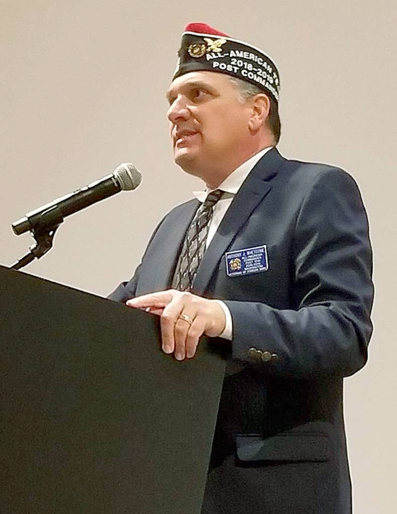 Outgoing VFW Post 1741 Commander Tony Whetstine speaks at the celebration dinner. COURTESY PHOTO