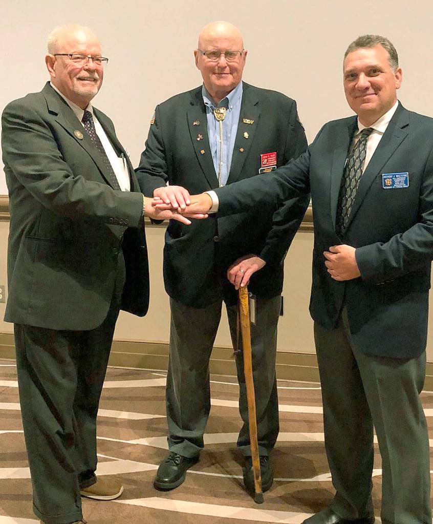 Washington Department Commander John Rust, middle, joins VFW Post 1741 Commander Roger Flygare, left, and District 11 Commander Tony Whetstine for the festivities. COURTESY PHOTO
