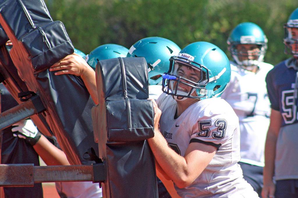 Auburn Riverside – some 80 strong – went through an up-tempo practice Tuesday under the watch of second-year head coach Marcus Yzaguirre. The Ravens are looking to bounce back from a 3-7, injury-riddled season. AR is a strong contender to capture the North Puget Sound League Valley Division title this fall.