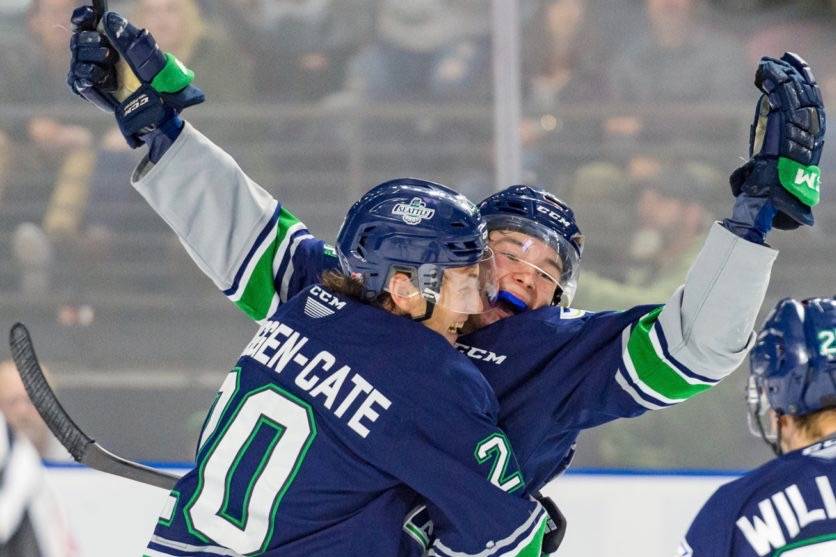 Shots on goal – Seattle 14-12-3 29, Victoria 6-10-12 28. Goalies – Seattle, Ross 28 shots-25 saves (2-2-0-0); Victoria, Gould 28-24 (0-1-0-0). Power plays – Seattle 3-6; Victoria 1-6. A – 4,127. Referees – Kevin Bennett, Brett Iverson. Linesmen – Nick Bilko, Tim Plamondon.