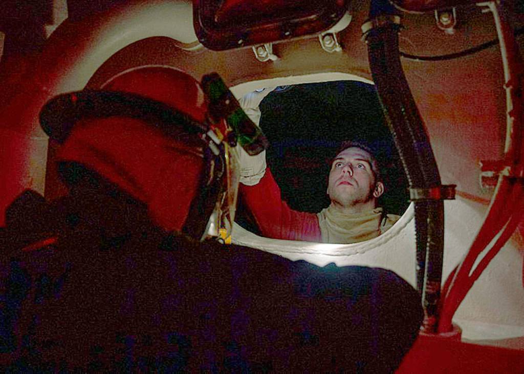 Navy Damage Controlman 2nd Class Tilden Sansom, right, from Auburn, instructs Damage Controlman 2nd Class Savannah Morris, from Atlanta, on proper de-smoking routes during a general quarters drill aboard the aircraft carrier USS Harry S. Truman (CVN 75) in the Arabian Sea on Feb. 5.