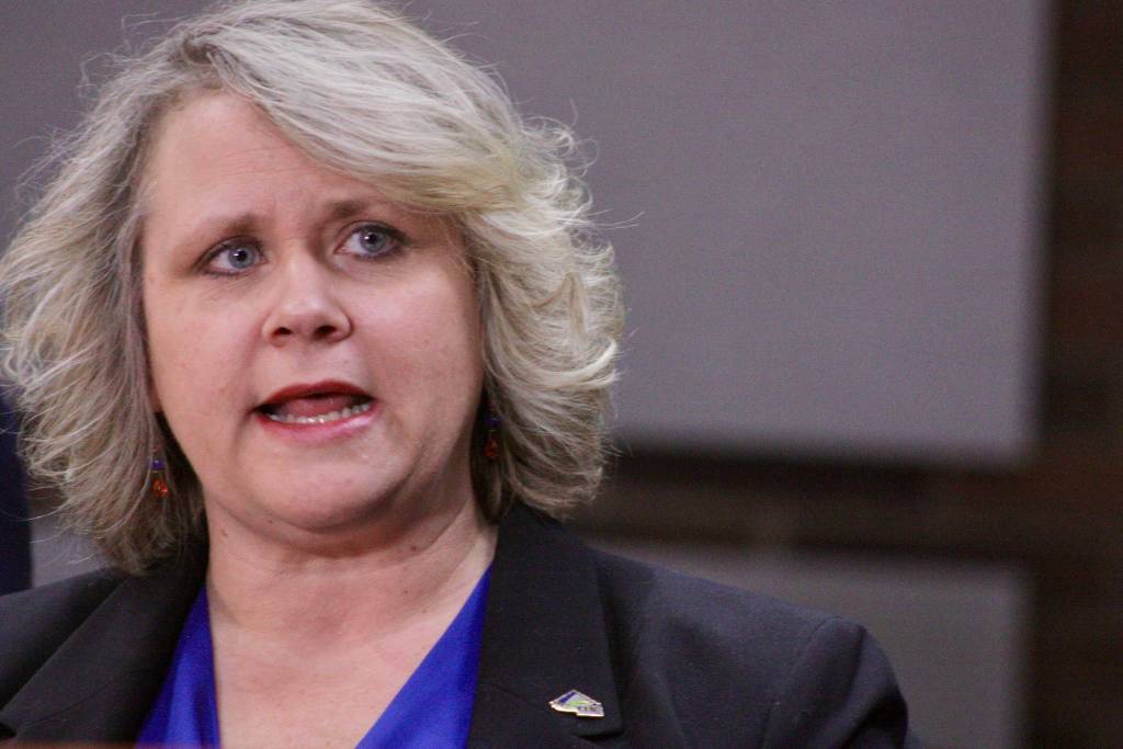 Kent Mayor Dana Ralph addresses the media about the King County-run quarantine facility in Kent during a news conference at City Hall on Friday. A potentially-infected patient fled the facility, posing questions about the security of the newly-established site. MARK KLAAS, Kent Reporter